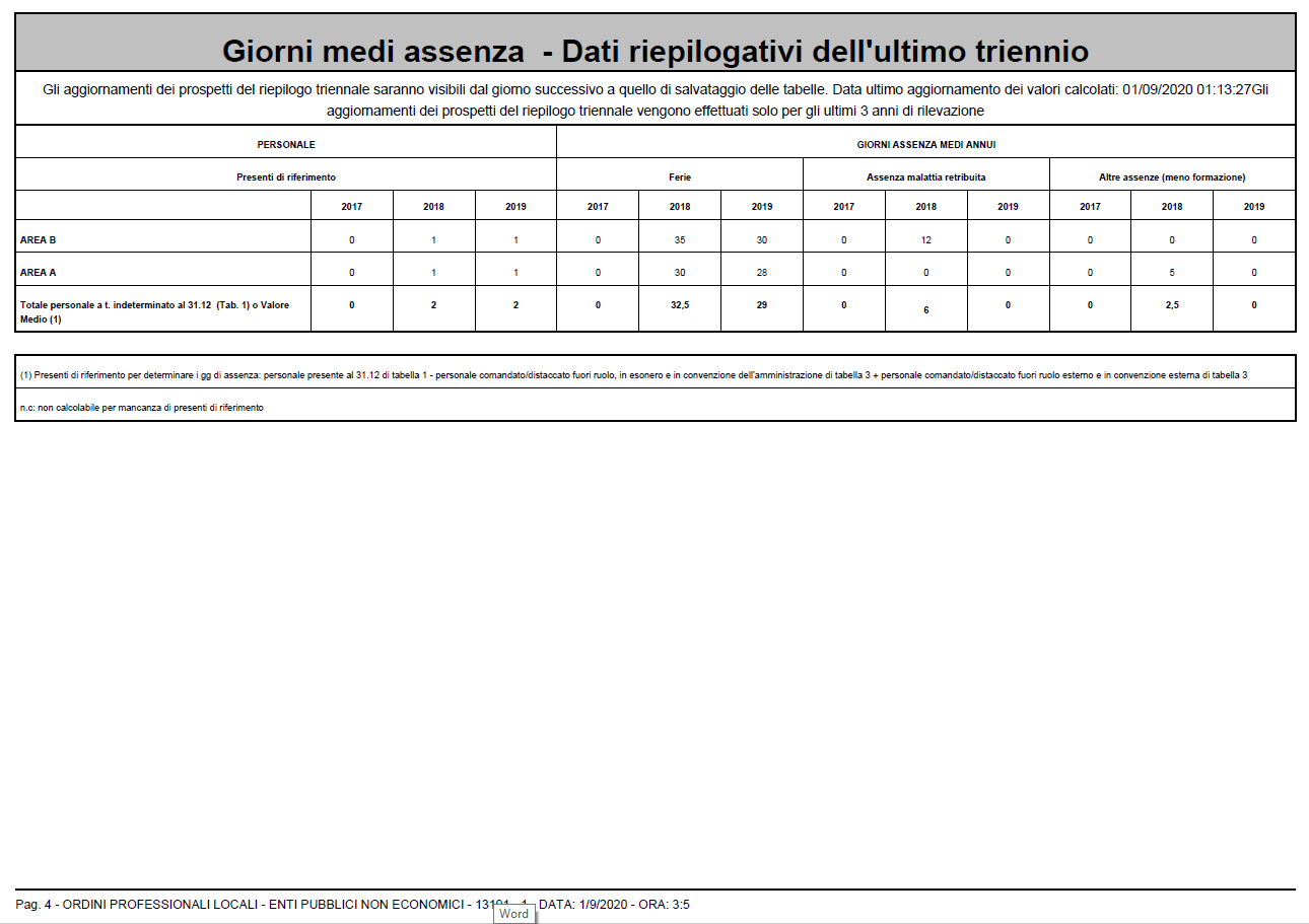 Si riporta Tabella di rilevazione assenze, come da comunicazione Conto annuale relativa all'Ente (RIF.: Titolo V del decreto legislativo del 30 marzo 2001, n.165).